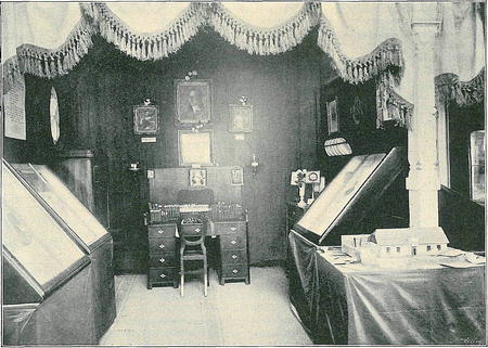 něho menší podobizny jeho manželky a jeho tří dcer. Po straně v obou rozích postaveny dvě vzácné sádrové sošky výše uvedené. Jednu stěnu zdobil obraz jeho nejdůvěrnějšího přítele Ant. Marka.