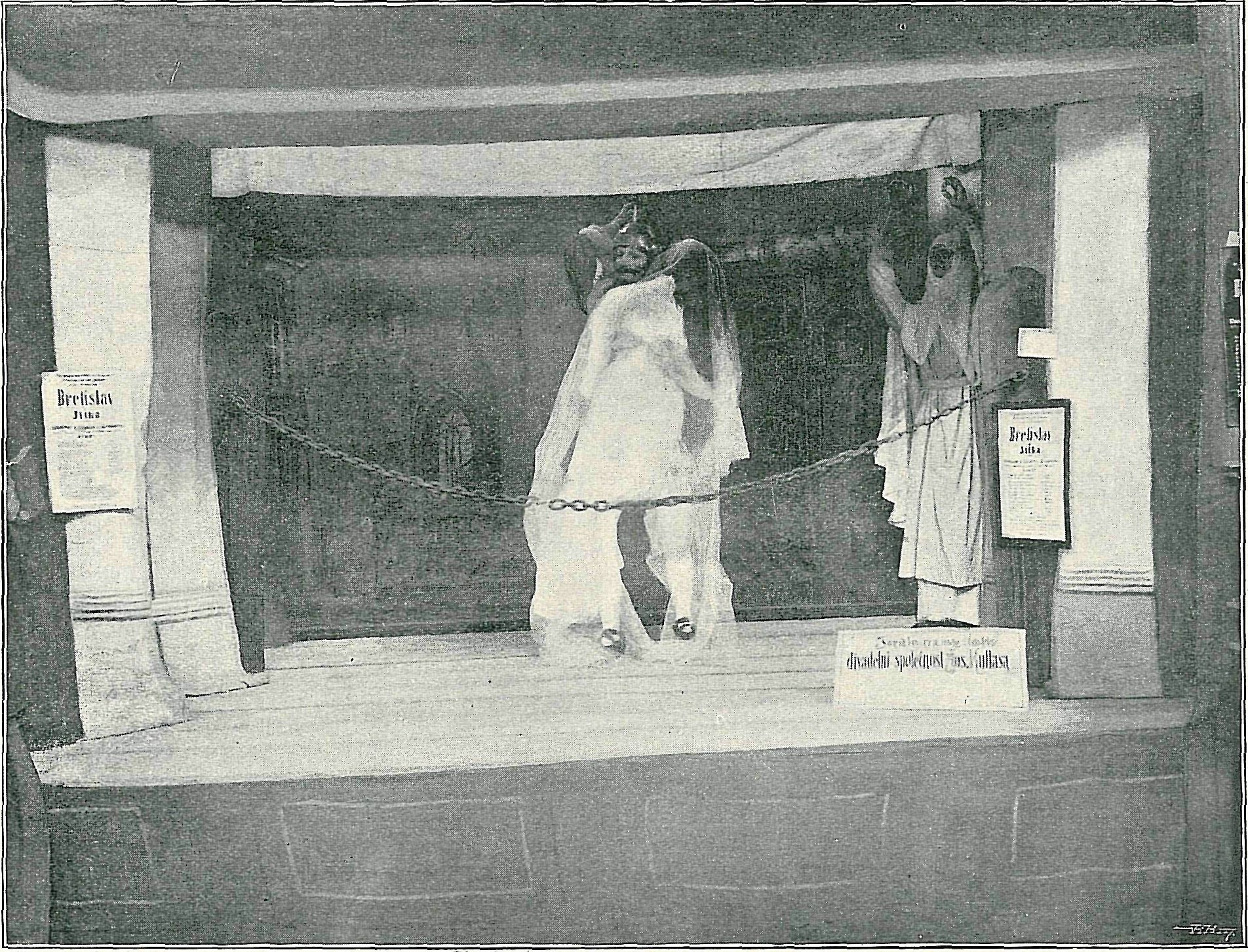 Vystavena též cedule zcela německá: »Das Brünner Dienstmädchen, oder Das Opfer kindlicher Liebe« — překlad to Tylovy »Paličovy dcery«, jižto herec a regisseur Karel Ruber, někdy člen divadla v Růžové ulici, k své brněnské benefici přeložil a dne 23. října 1848 dával.