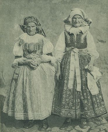 Obr. 16. Pohádkářky na přástkách. Stařeny hanácké z Hrušky u Kojetína. Fotografoval Jos. Klvaňa.