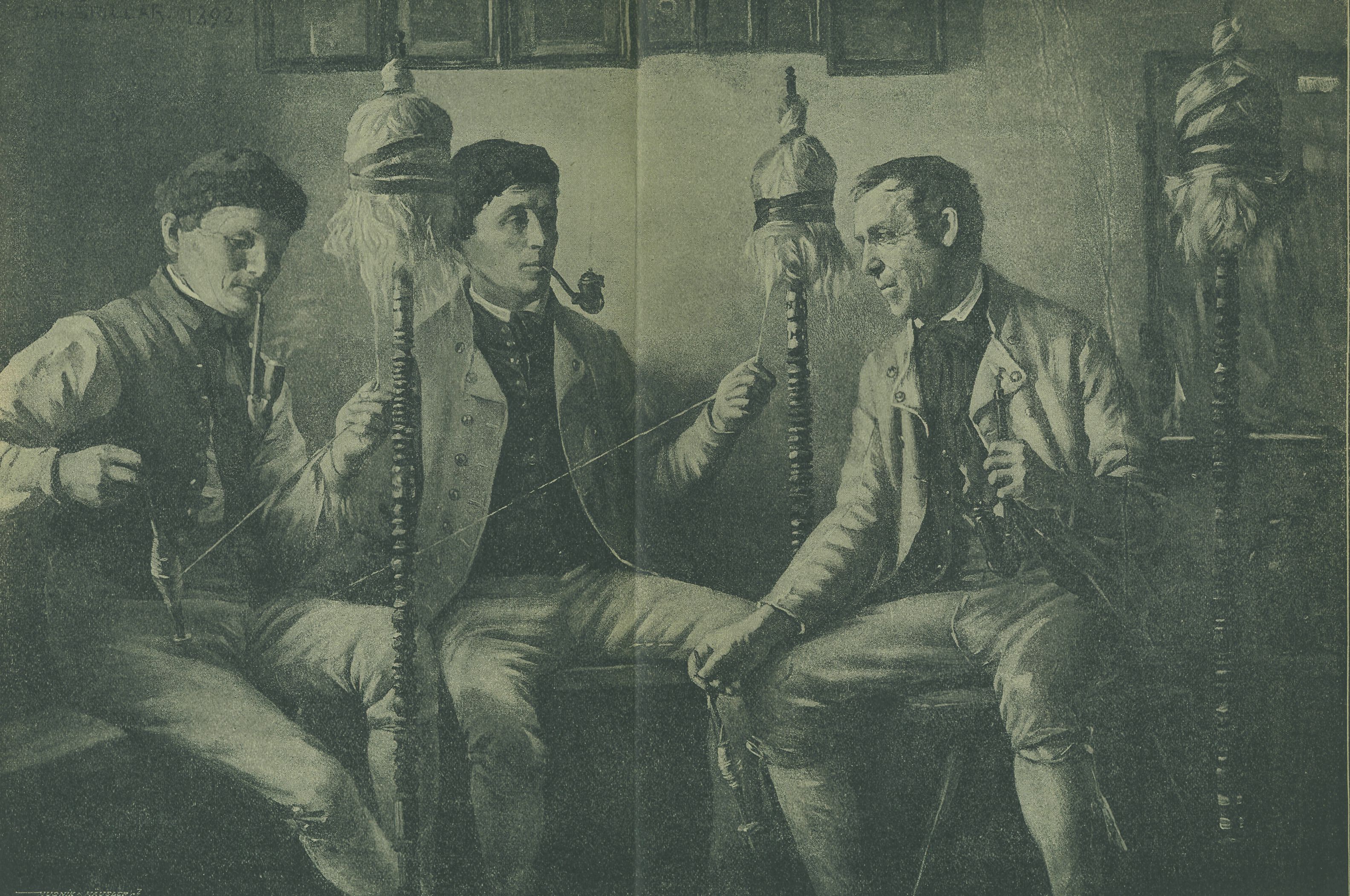 Sedláci Postřekovští na Chodsku na přástkách. Dle skutečnosti kreslil Jaroslav Špillar/