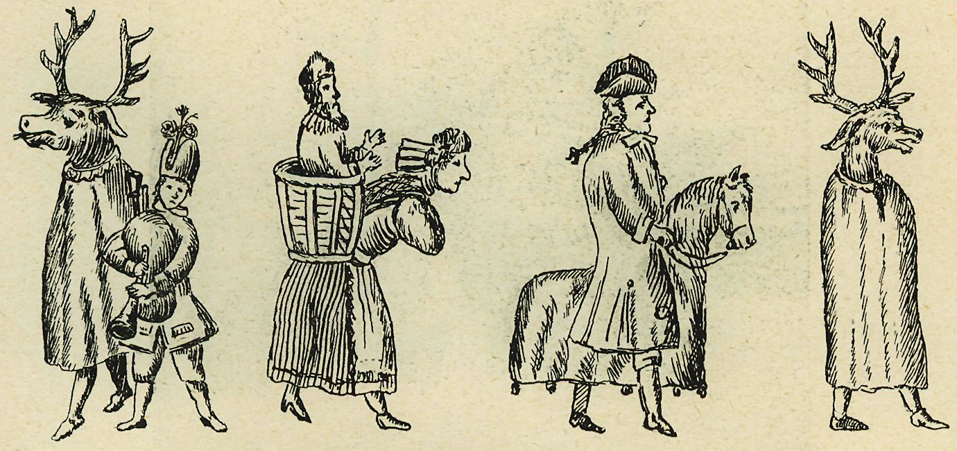 Obr. 30. 34. Masopustní lidově maškary v průvodu pražských židů r. 1741. na počest narození císaře Josefa II.
