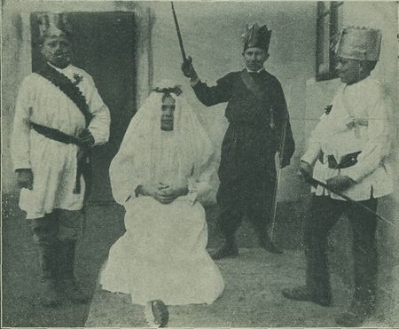 Africius: Rychle sem katané přistupte, — a Dorotu do žaláře vemte, — tam ji trapte a mučte, — kterej nejvíce umíte a můžete.