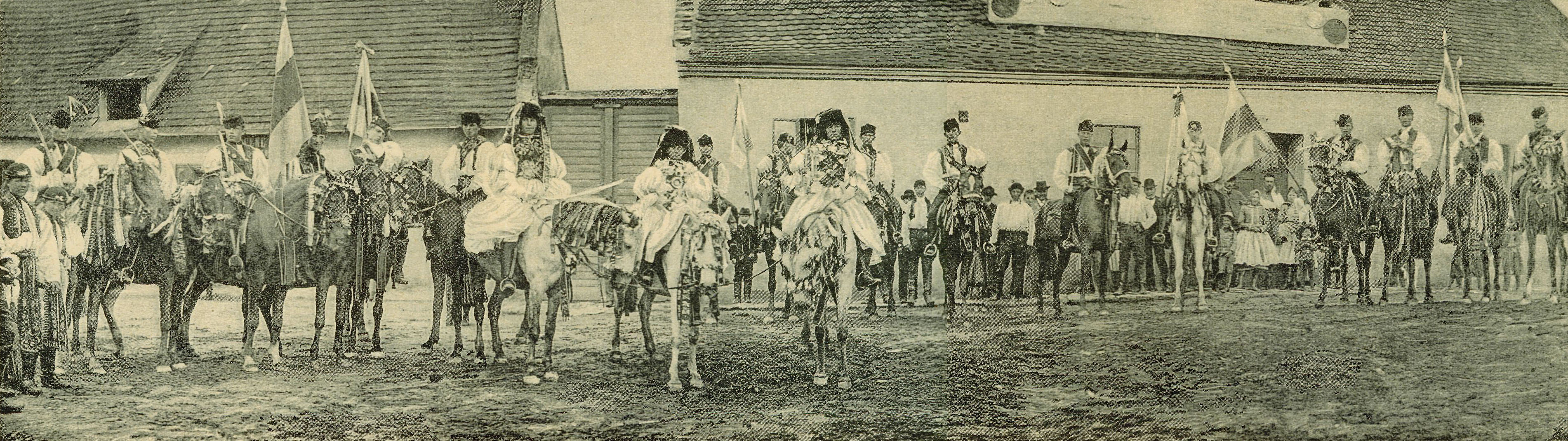 Jízda králů v Uh. Hradišti o letnicích r. 1892. Fotografoval řeď. Jos. Klvavňa.