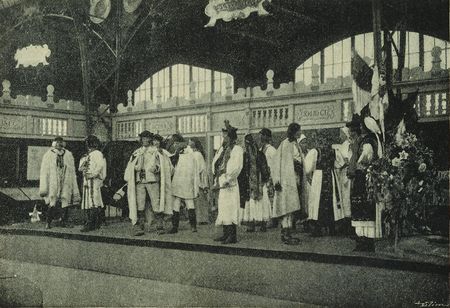 Obr. 3 Poboční skupina »Jízdy králů« ve zvykoslovném oddílem na Národopisné Výstavě Ceskosjovanské 1895.