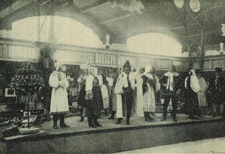 Obr.4. Poboční skupina »Jízdy králů* ve zvykoslovném oddělení na Národopisné Výstavů Českoslovanské 1895.