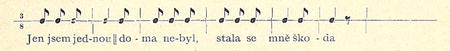 Kromě toho však jest hojnost písní, při nichž ani počátek ani další znění není takového rázu, aby z nich dal se vysvětliti vznik neshodného nápěvu. Za příklad služ tato píseň: