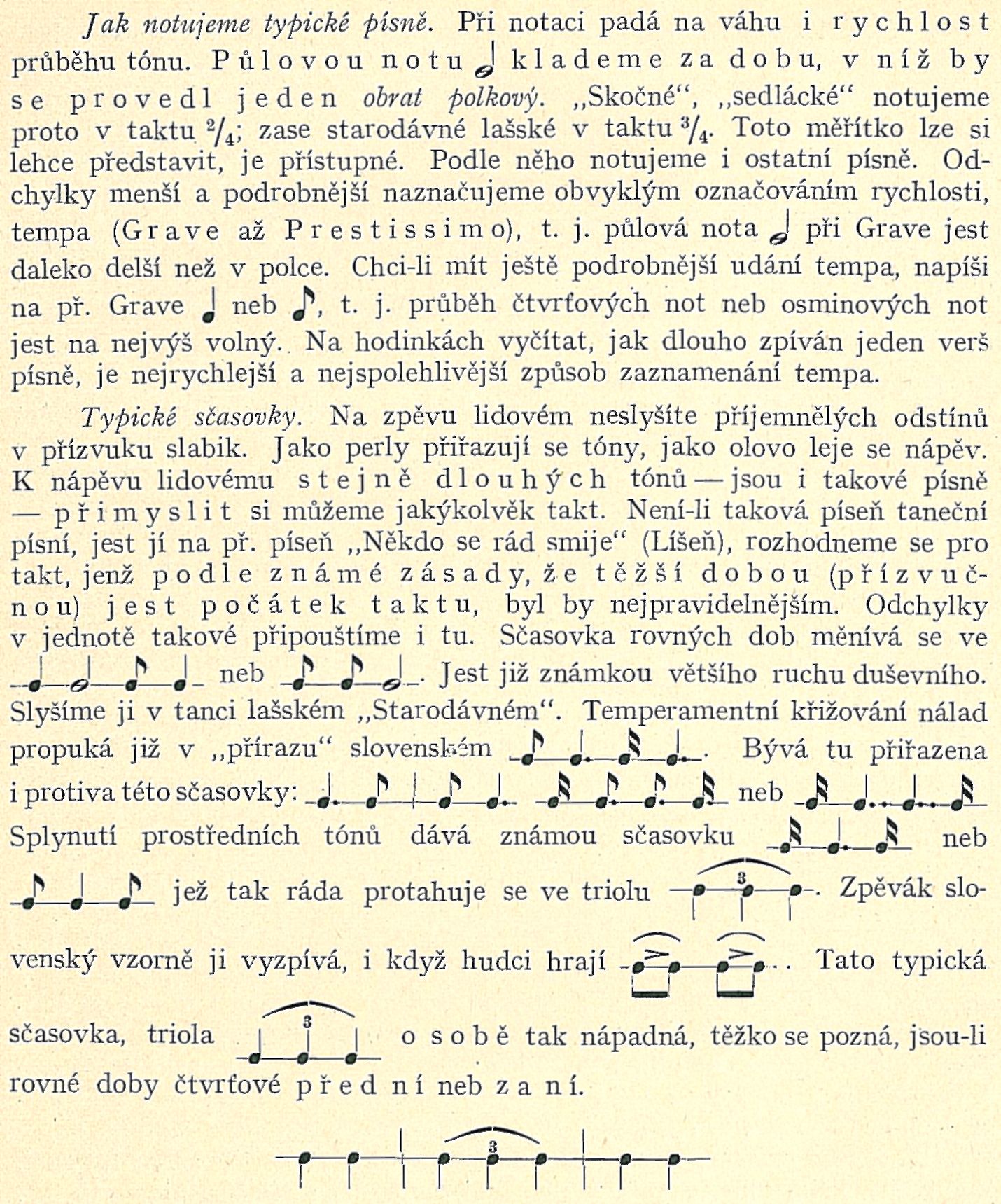 Hudci slovenští i laští obalí a zapředou v drobnější a jemnější rytmické tkanivo píseň; mnohdy nevyznáte se v něm, dokud zpěv jasný a určitý pořádek v něm neudělá.