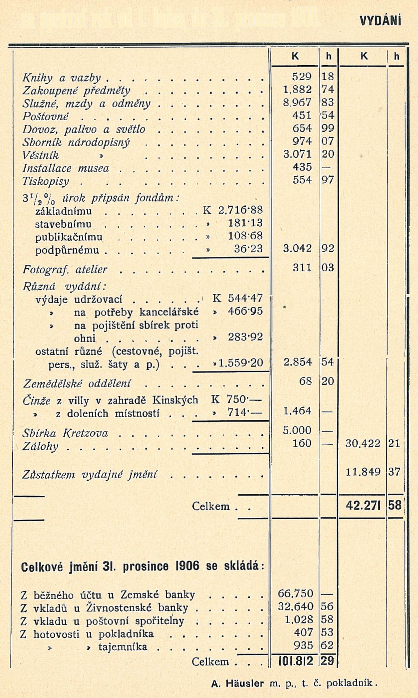 za správní rok od 1. ledna do 31. prosince 1906.