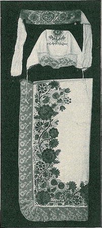 Vedle šatky a vínků českých zachoval se na Blatsku památkou zvláštní úbor hlavy při čepení nevěsty obvyklý. Jest to „roucha" podobná šatce, která asi dříve všeobecné se nosila, však jako vzácný přežitek udržela se do nedávna jen při významném slavnostním „čepení nevěsty". Roucha jest plátěný pruh 85 cm. dlouhý a přes 60 široký, od polovice po délce při kraji a přes roh skvostně vyšita, zdobena paličkovanou krajkou. Pvoucha ovinovala se přes čepec kol hlavy pod hradu a po straně připevněna byla jehlicí.
