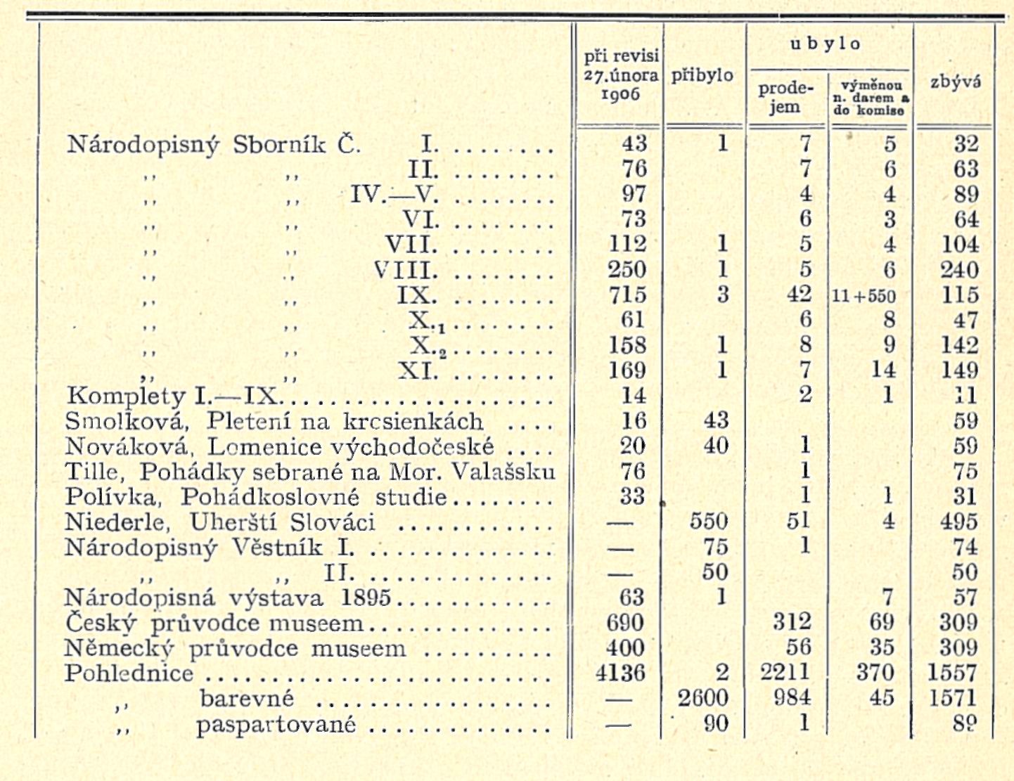 výměnou a darem; cca ioo ex. zůstávalo pro reklamace a komplety. O stavu ostatního skladu (prodejných, starších publikací) podáván je samostatný výkaz.