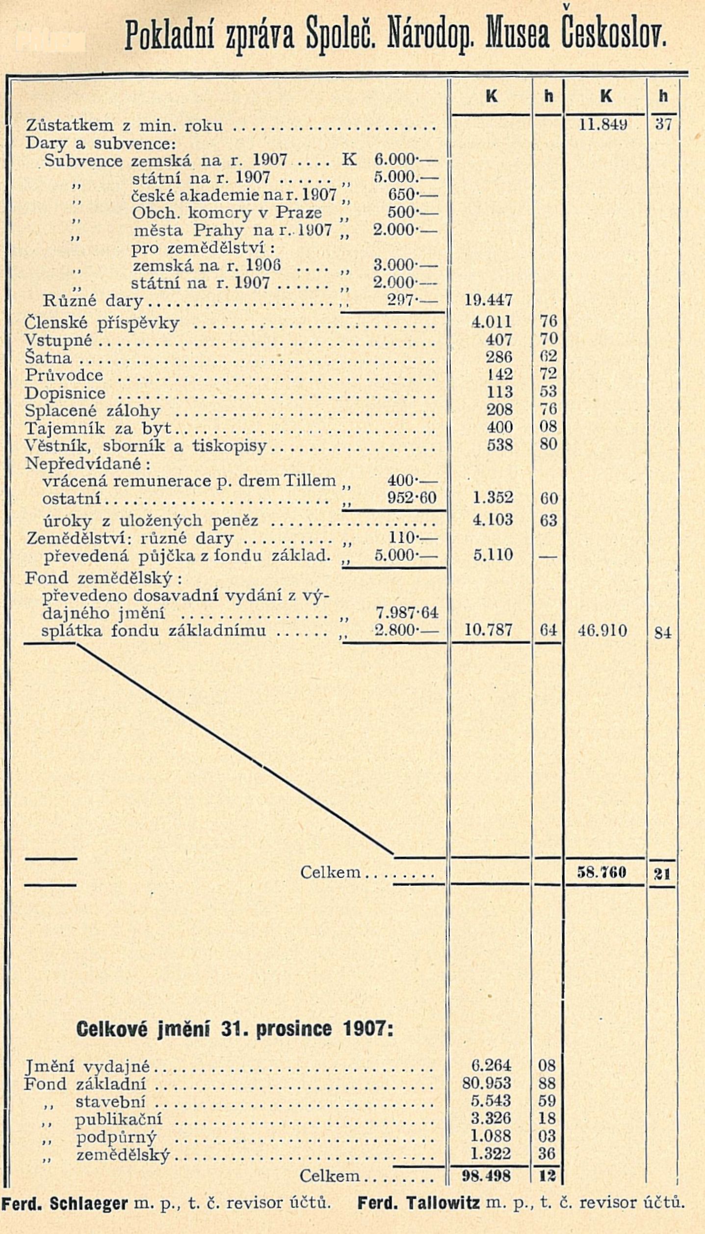 Pokladní zpráva Společ. Národop. Musea Českoslov.