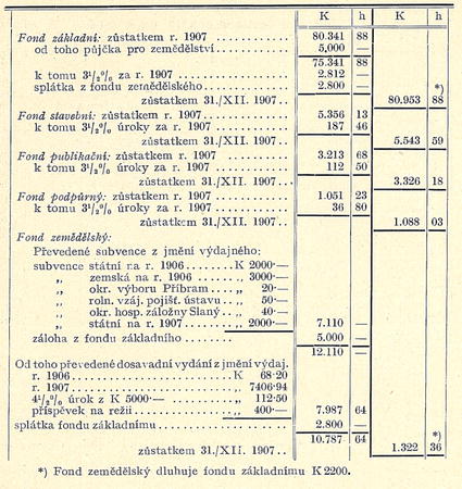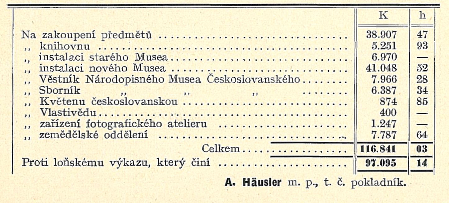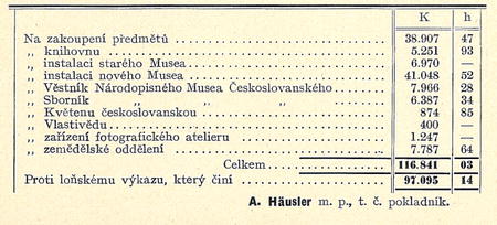 Od počátku činnosti Společnosti NMČ. do konce r. 1907 investováno do podniků musejních (mimo výdaje správní) celkem