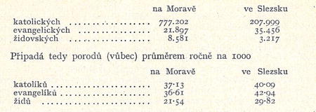U„ židů, kteří náležejí téměř veskrze vyšším třídám společenským, jest v českých zemích plodnost velmi malá; jest značně nižší na Moravě než ve Slezsku. Mezi katolíky a evangelíky není velkých differencí, na moravské protestanty připadá dětí o něco méně, na slezské o něco více než na katolíky.
