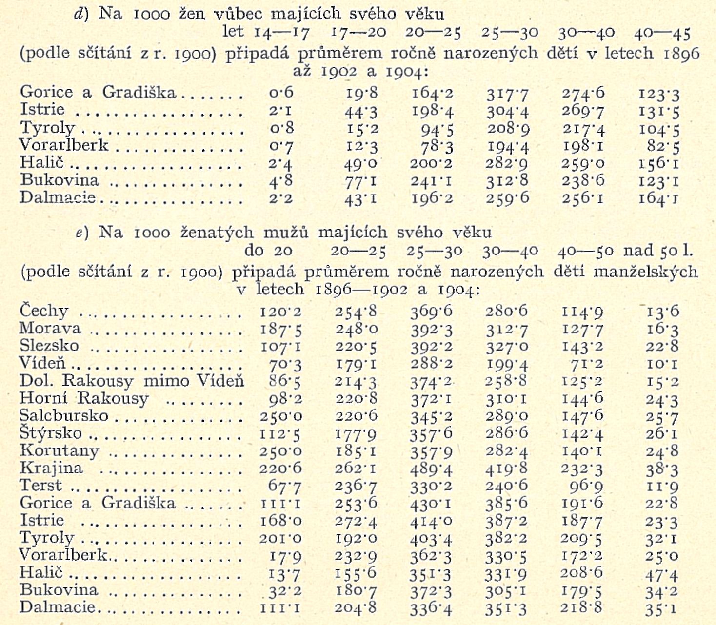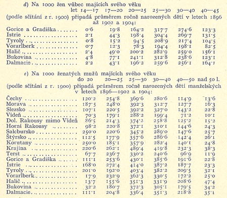 Vysoké číslo porodů v některých zemích slovanských (krasových a karpatských) způsobeno jest jinými okolnostmi než vyšší plodností; jednak slabším zastoupením vyšších věkových tříd, což špatně svědčí o domněle