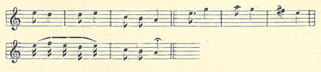 V písni vzývali Myslavané jmenovitě sv. Dominika a sv. Floriána za ochranu proti ohni. Pěknou melodií vynikala zvláště jedna píseň mariánská „Hvězdo jasna Maria!", kterou jsem si také poznačil a podávám zde její nápěv: