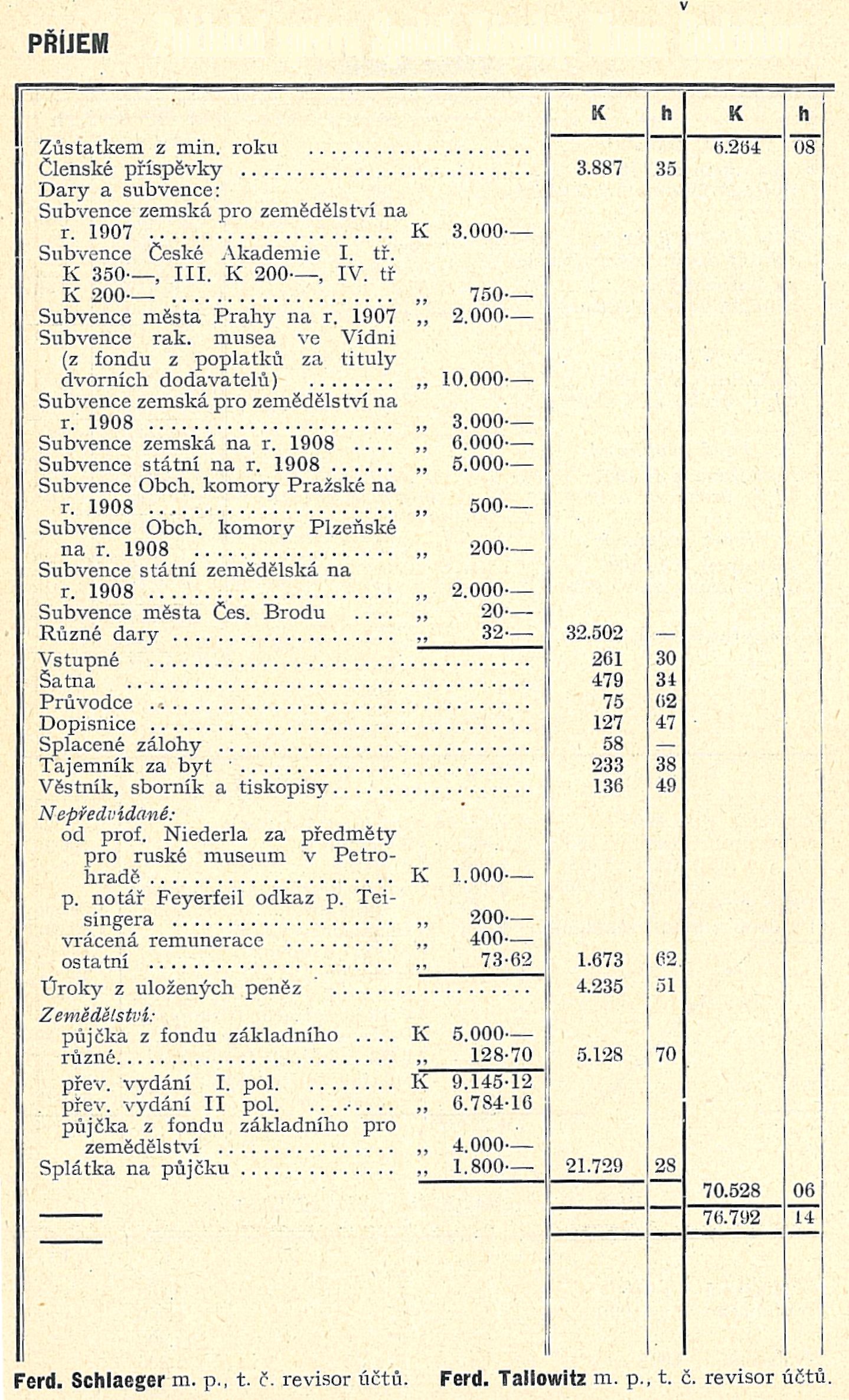Pokladní zpráva Společ. Národop. Musea Českosk.