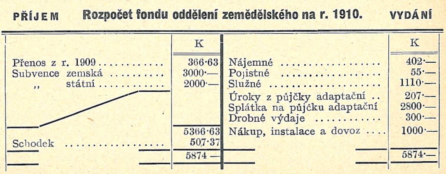 Rozpočet fondu oddělení zemědělského na r. 1910.