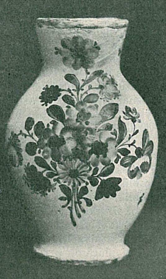 c) Pestrobarevný džbán z г.. 1787. Z barev vyniká nejvíce purpurověčervená. (Z mé sbírky.)