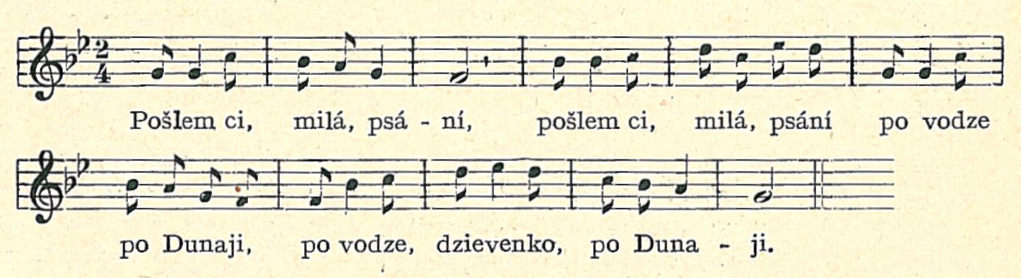 Máme tudíž hudebně nejméně o jednu přednost více, než všichni n'árodové ostatní. Važme si jí proto a tím více milujme — píseň slováckou, aby někdy — v nestřežené chvíli — za oběť snad nepadly její vzácné vlastnosti, jimiž tak ráda cizina se honosí ...