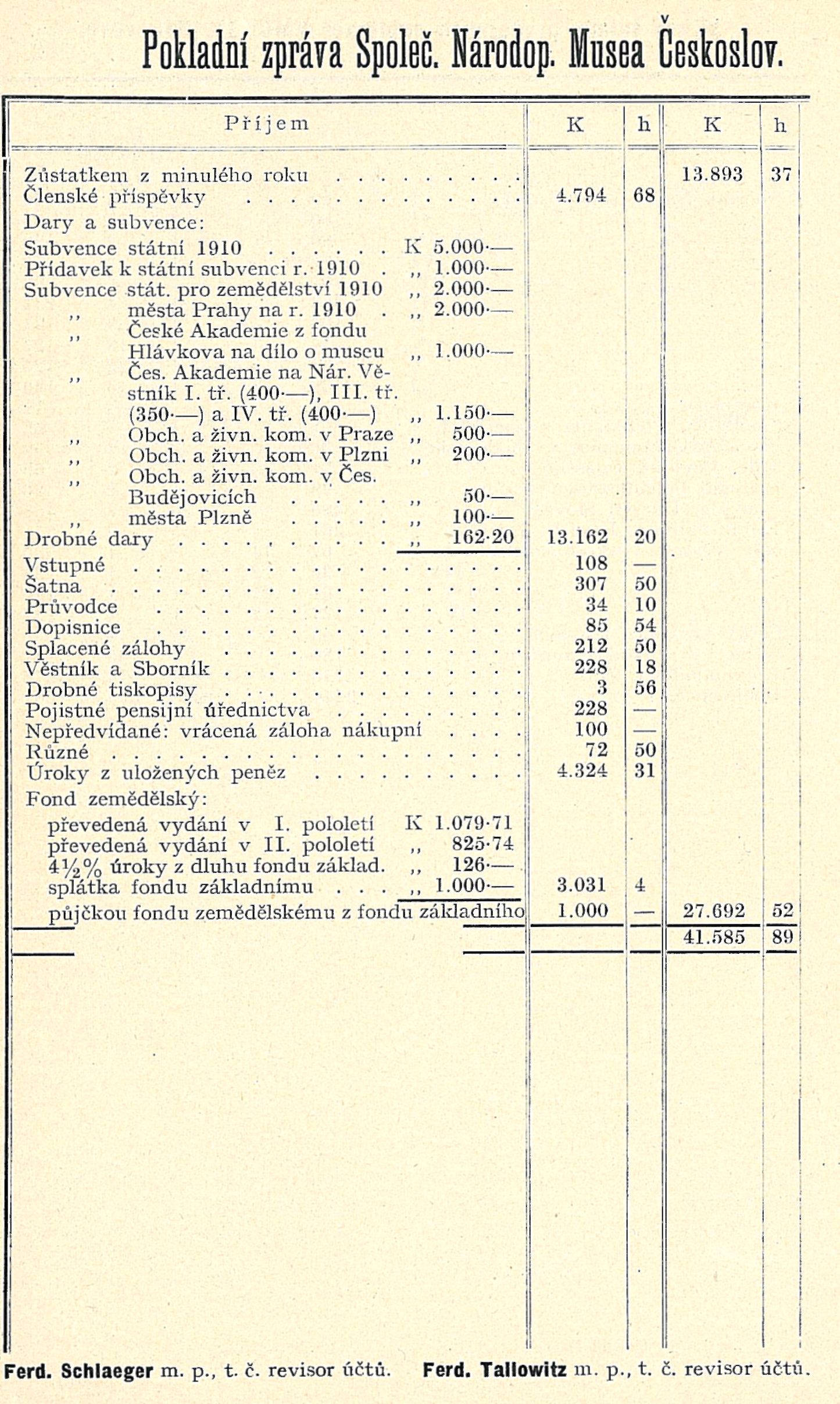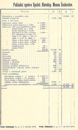 Pokladní zpráva Společ. Národop. Musea Českoslov.