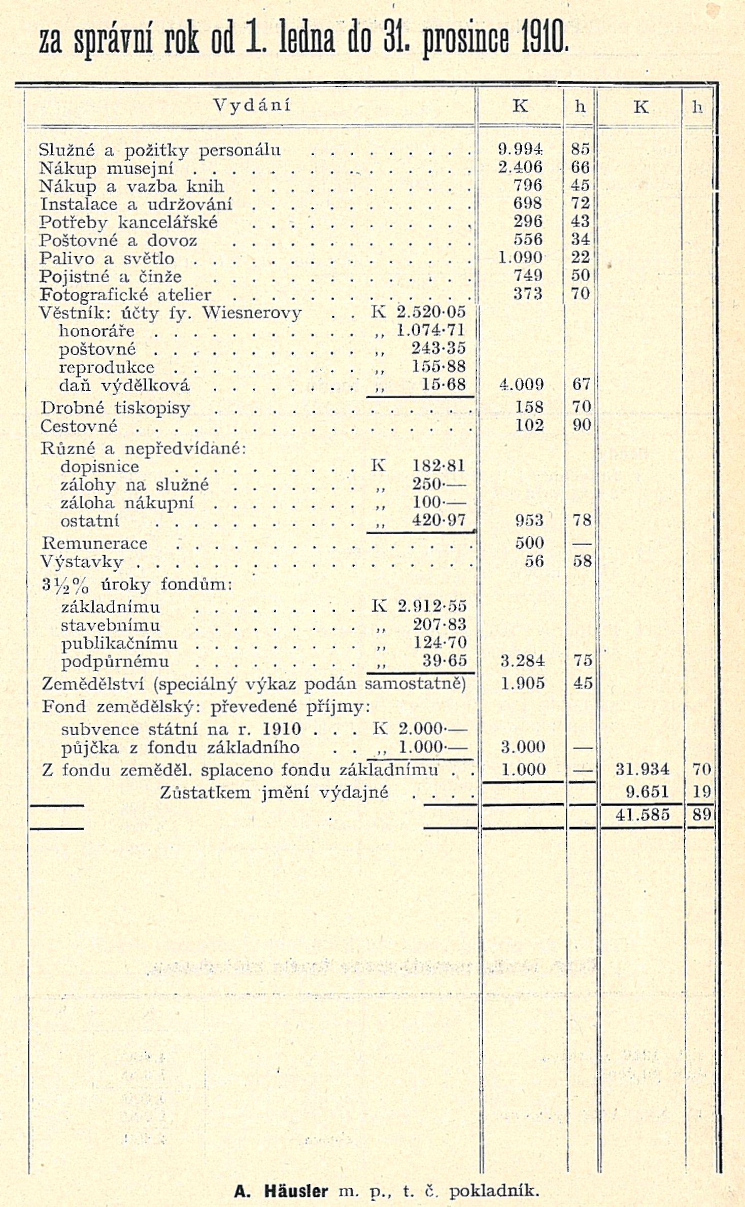 za správní rok od 1. ledna do 31. prosince 1910