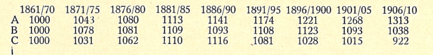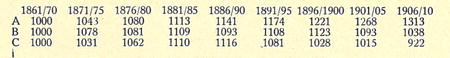 díme za data první řady (1861—1870) 1000; pak dostaneme tento výsledek: