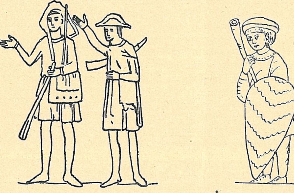 45) Tak je vidíme v rotundě znojemské (L e h n e r Děj. um. I. 3. obr. 91), dále v evangelistáři piaristickém (Pam. XXII. 411), v evangelistáři hnězdenském (Lehn er 1. с. 3, 399) a svatovítském (1. с. 427). Ohnutý roh s náhubcem má pastýř na 5. tabuli Vocelovy edice bible Velislavovy. Srv. i Eljasz Walery-Radzikowski Ubiory v Polsce Krak. I. tab. XL, р. 16.