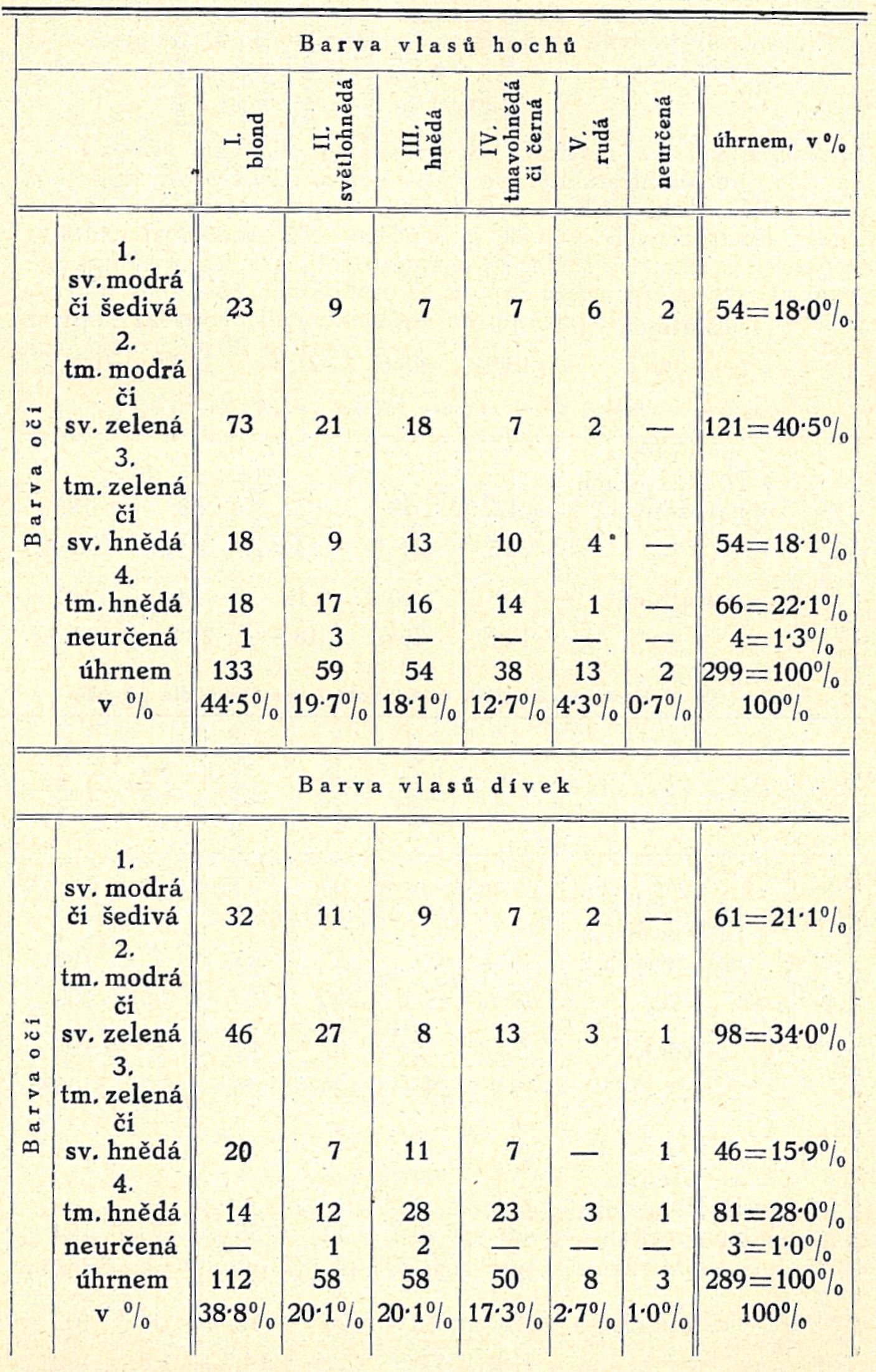 Tab. VII. Pigmentace dítek české kolonie ve Vídni.