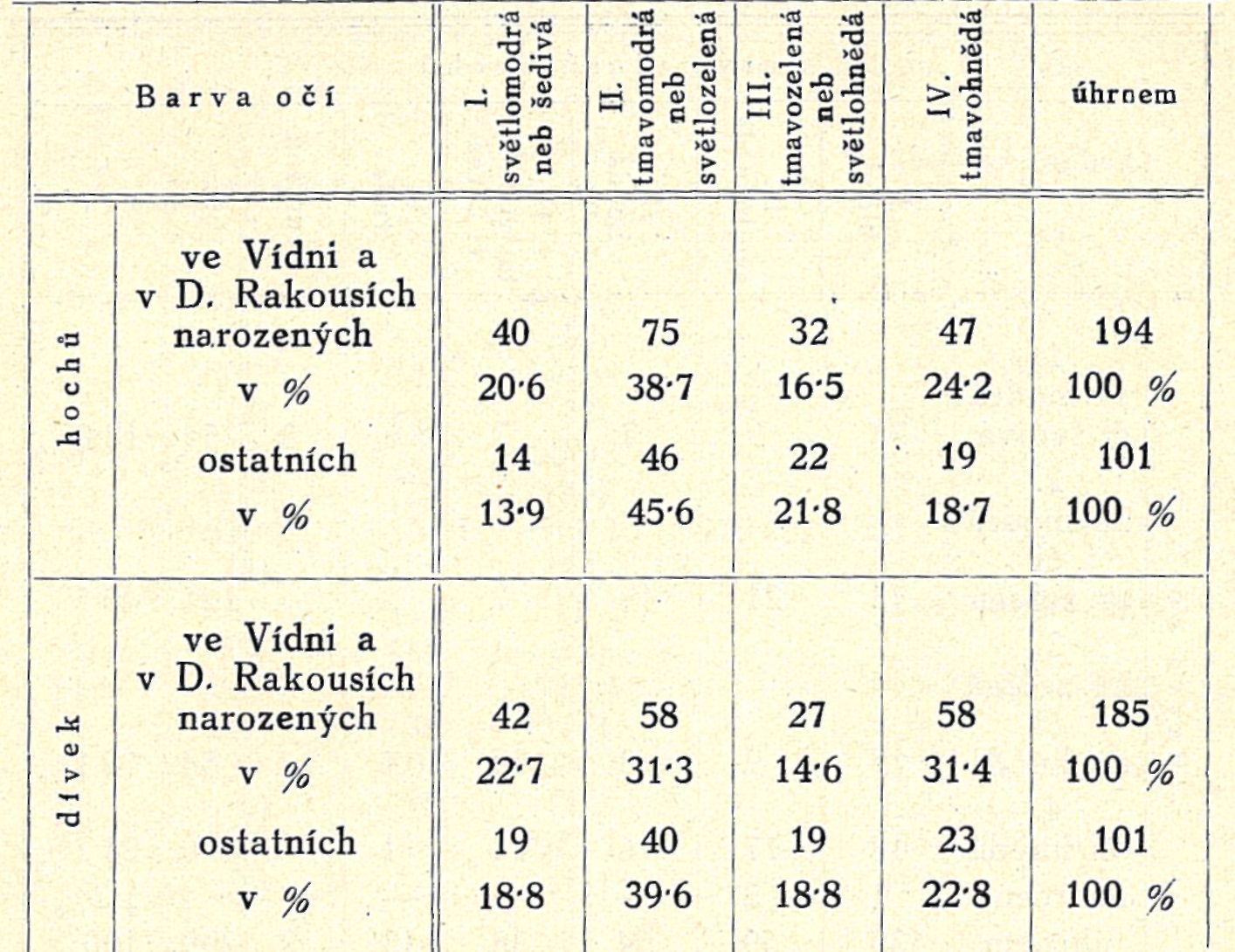 Tab. VIII. a) Barva očí dítek české kolonie ve Vídní dle původu.
