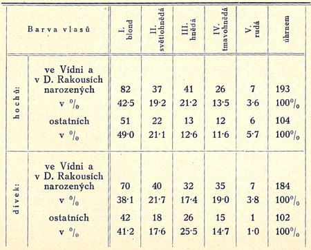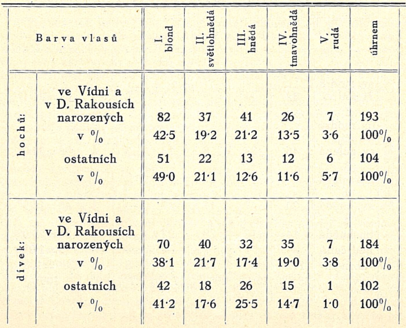 Tab. VIII. b) Barva vlasů dítek české kolonie ve Vídni dle původu.