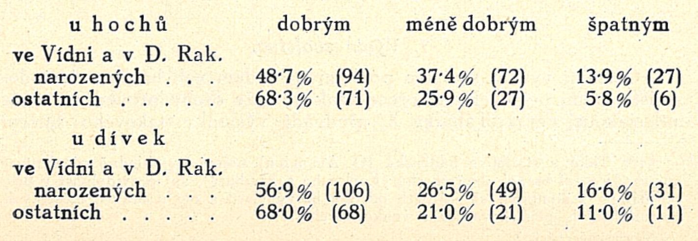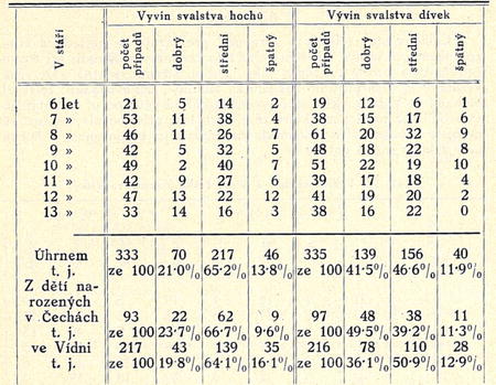 Jak mezi hochy, tak mezi dívkami ve Vídni a okolí narozenými nachází se menší počet dítek s dobře vyvinutým a naopak větší počet se spatně vyvinutým svalstvem; také v tom prozrazují se patrně vlivy velkoměsta na následující generaci.