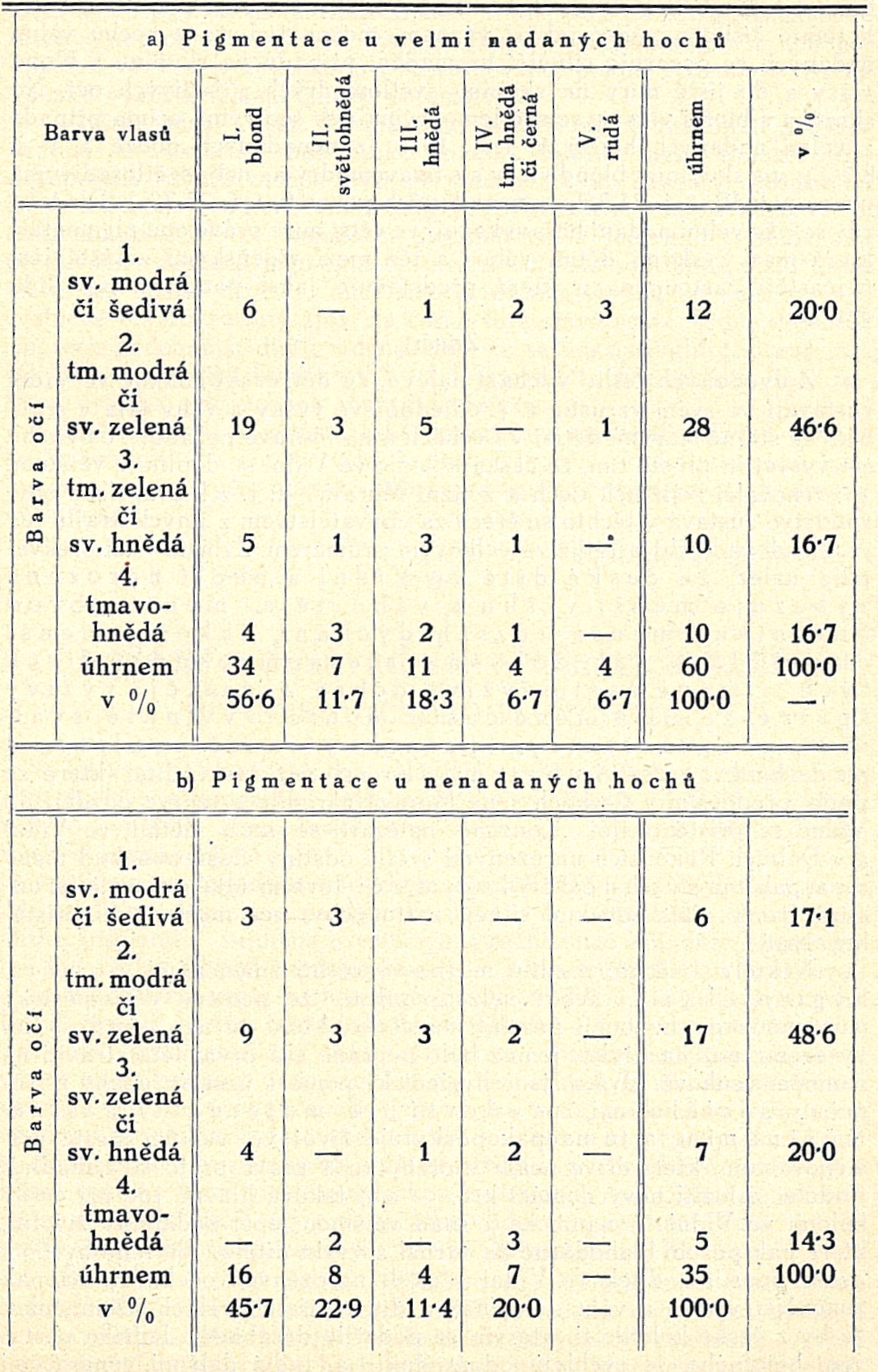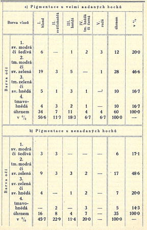Tab. XIV. Pigmentace hochů české kolonie ve Vídni dle nadání.