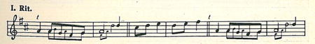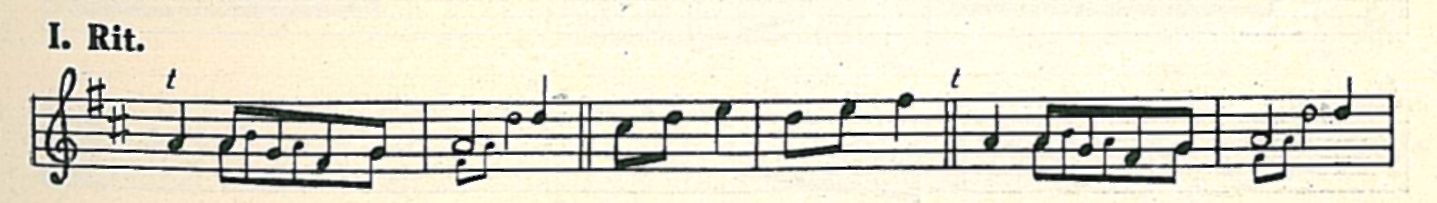 Tanců, obsahujících veskrze tento typ, jest několik: Především patří sem jeden tanec sbírky Rittersberkovy (č. 5), dle něhož jsem zvolil i název tohoto typu: „Talián"-. Týž tanec otisknut je i v Prok-schově „Musiklehre" II., str. 63.