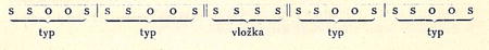 Připojím hned druh tance, který možno zváti rozšířenou fot mou „hrábě", ježto po vložce následují zase dva typy, tak jako před cházely. Schema jeho tedy jest trojdílné: