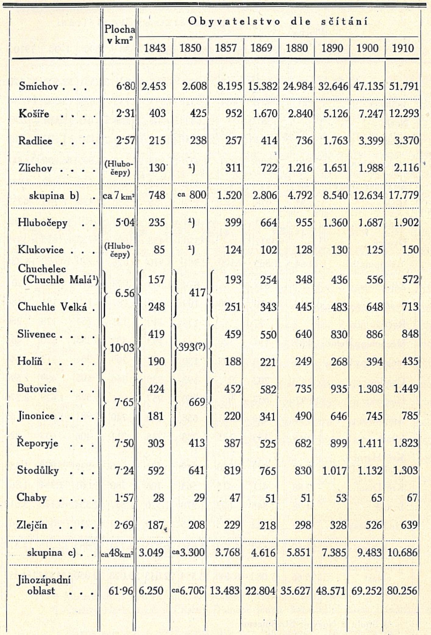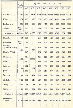 *) Při sčítání r. 1850 shrnuto obyvatelstvo Zlíchova, Hlubočep a Klukovic dohromady.