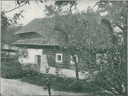 Přistupme nyní к podrobnějšímu popisu uvedených typů. Půdorys primitivního domu dvojdílného je obdélník, jehož bočná stěna je o málo delší čelné, takže rozdělením vzniká skoro čtvercová jizba a poměrně úzká síň. Stavení roubili si sami za vedení domácího tesaře samouka;