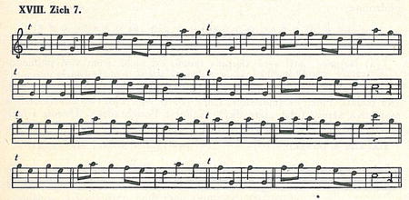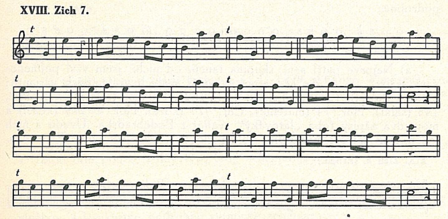 Počáteční slůvka veršů „der, a, das" jako neprízvučná připadají vždy na předtaktí. Neprízvučný člen v třetím verši „a (silbers)" nemůže však býti tak umístěn, pročež připadá na těžkou dobu, a ještě k tomu následující čtvrtka musí být výjimečně rozdvojena pro dvě slabiky slova „silbers". Z toho je patrno, že tento text byl určitě složen к hotové melodii instrumentální.
