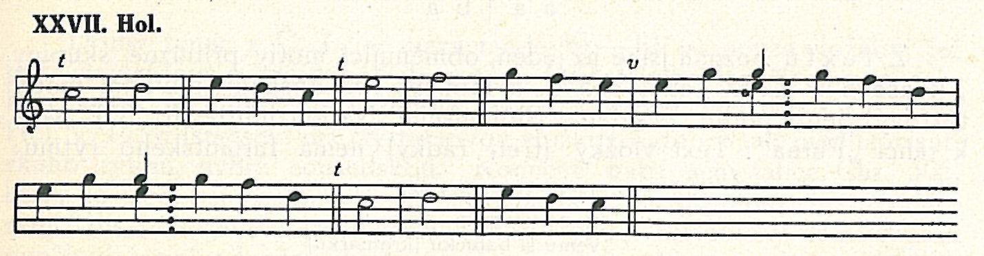Vložka ta je u Hol. V. 139 čtyřtaktová, opakujíc dvoutaktový motivek, takže možno tuto formu ještě považovati za „zkrácenou trojdílnou"; u dvou dalších jest však jen dvoutaktová, takže celková forma je dvojdílná: