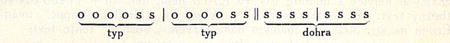Typy, varianty předešlého motivu a, jsou zcela stejné; vlastně je to opakování téhož typu, a také osmitaktová sousedská zcela opakuje čtyř-taktový motivek: