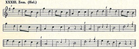 Uvedu příkladem tanec z Chr. (notami dvojnásobného trvání) a připojím v druhém jeho„dí!u malými notami variant Hol. V. 170. Tance Holasovy a tanec z Č. L. třeba opraviti dle prav. I., tanec z Chr. dle prav. II.