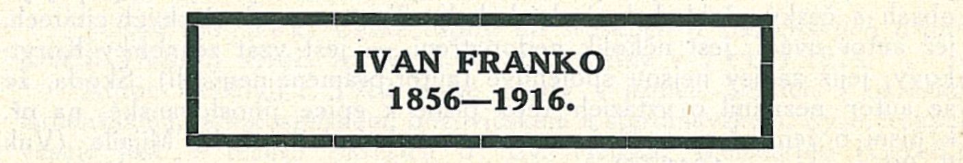 Malorusům zemřel buditel, jehož jméno znamená dalekosáhlý program národního obrození v životě i v umění, literární dějiny a národopis ztratily osobnost, kterou i přísná kritika řadila mezi nejvýznačnější. Byl to vášnivý bojovník, břitký, neúprosný polemik, ale bil se vždy jen za nejvyšší statky lidstva a z mraků jeho hněv-ných, zahořklých invektív prosvítal soucit s uraženými a poníženými, radostná naděje v jejich vzkříšení, čistá láska к rodnému lidu. Byla pýchou i osudem jeho života. Obětoval jí hmotné zabezpečení, zdraví a vědeckou dráhu, klid a štěstí své rodiny; byl třikráte v žaláři, umíral hladem, zakusil posměch a pronásledování od vlastních krajanů, prošel peklem své rodné země — oheň utrpení ho nezničil, zakalil jen pružnou ocel jeho ducha. Ztvrdla a rány, jež zasazovala, byly pak hlubší a nebezpečnější. Utrpením rostl i umělec. Osud jim smýkl až na dno společnosti, ale obdařil ho nadáním nevšední síly, tak že dovedl říci, co viděl a zažil, dovedl vliti svůj hněv i obdiv, zoufalství i naději do veršů, jimž záhy naslouchala celá mladá Ukrajina. Učila se od něho překonávati re-signaci a mučivé pochybnosti, neboť přes všechna protivenství miloval život nepřestávaje doufati v lepší budoucnost svého národa. Bylo by třeba knihy, aby plně vynikl Franko umělec a žurnalista, buditel a politik, literární dějepisec a etnograf.