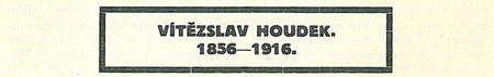 1. června t. r. zemřel Vítězslav Houdek, bývalý místopředseda moravského místodržitelství, nedovršiv šedesátého roku svého života věnovaného vedle obtížných prací úředních moravskému národopisu, starožitnostem a dějinám umění. Byl (od r. 1900) členem с. k. Ústřední komise pro výzkum a záchranu uměleckých a histor. památek ve Vídni a napsal pro jej! Mitteilungen několik stati, zejména však obohatil Časopis Matice moravské, Časopis muzejního spolku olomuckého a j. cennými studiemi, drobnými příspěvky a referáty svědčícími výmluvně jak o mnohostranném zájmu tak o pečlivých pozorováních a bedlivé činnosti sběratelské prodchnuté vroucí láskou к rodné zemi. Ve známém díle Österreichische Monarchie in Wort und Bild pojednal o osadách, příbytcích, pohádkách a pověstech moravských, byl odborným spoluredaktorem Vlasti-