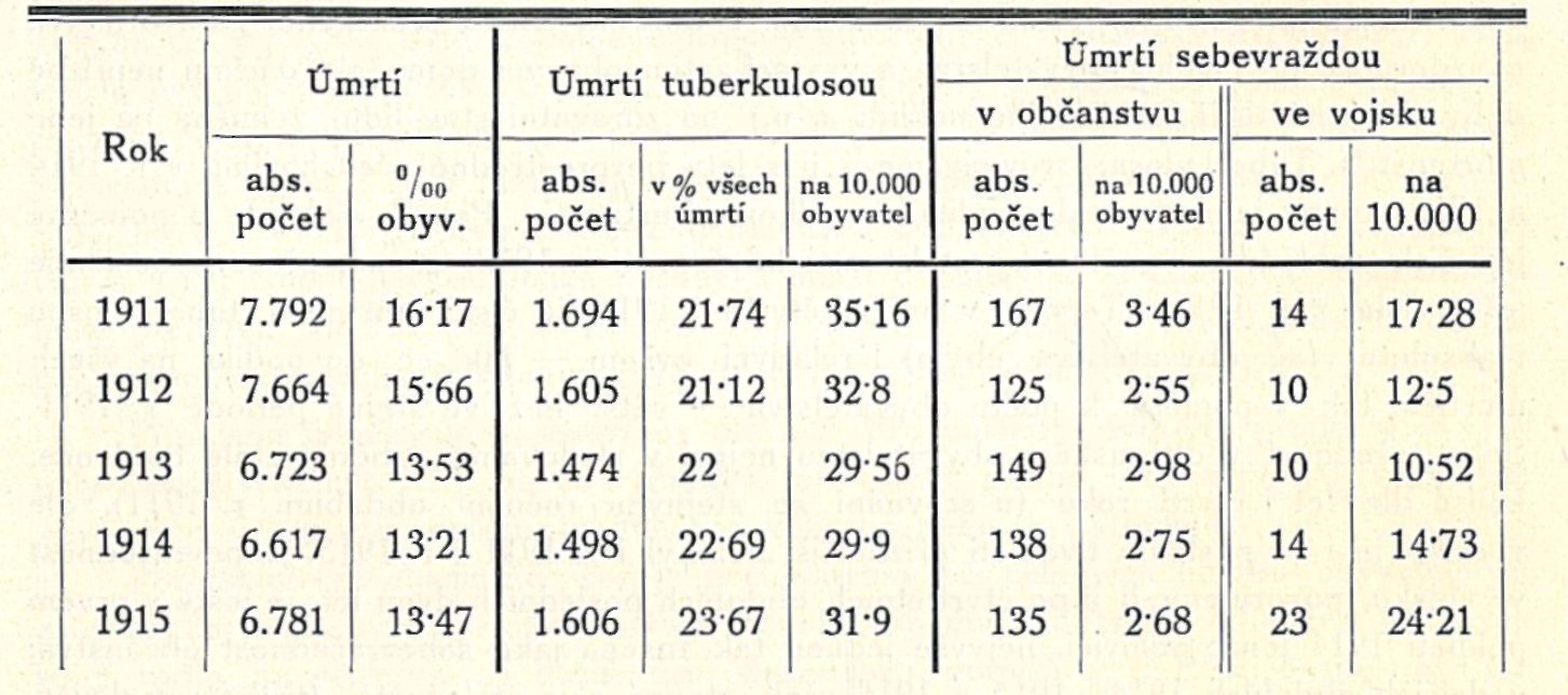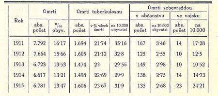 Tab. 11. Úmrtí v Praze a v hlavních jejích předměstích v pětiletí 1911—1915.