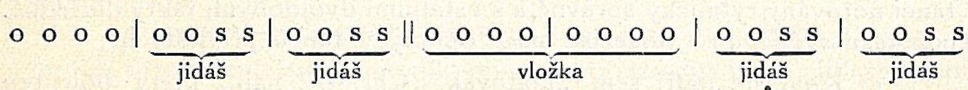 Tak jako v obdobném oddílu šestém, kde běželo o typ „vejra", proberu i zde ty tance, v nichž se vyskytuje pouze typ „Jidáše", kombinován (složitějším způsobem) se sousedskou, s obkročákem nebo posléze se „zakončením sousedskou". Jedinou odůvodněnou výjimku učiním na konci.