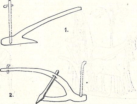 Pokud se týče celých zachovalých radel, našly se, pokud vím, v krajích Slovany obydlených jen dva kusy velmi zajímavé a jistě velmi staré. Bohužel první radlo, nalezené r. 1850 v rašeliništi u Papowa blíže Toruně (obr. 4, 1), nelze vůbec přesněji datovati, následkem čehož nelze