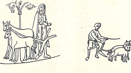 Vedle těchto dvou zachovalých celých nástrojů máme však ještě některé kresby ze IX.—XIII. století, z nichž aspoň jedna nepopiratelně předvádí slovanské radlo XII. století. Je to radlo, jež se nalézá na známé