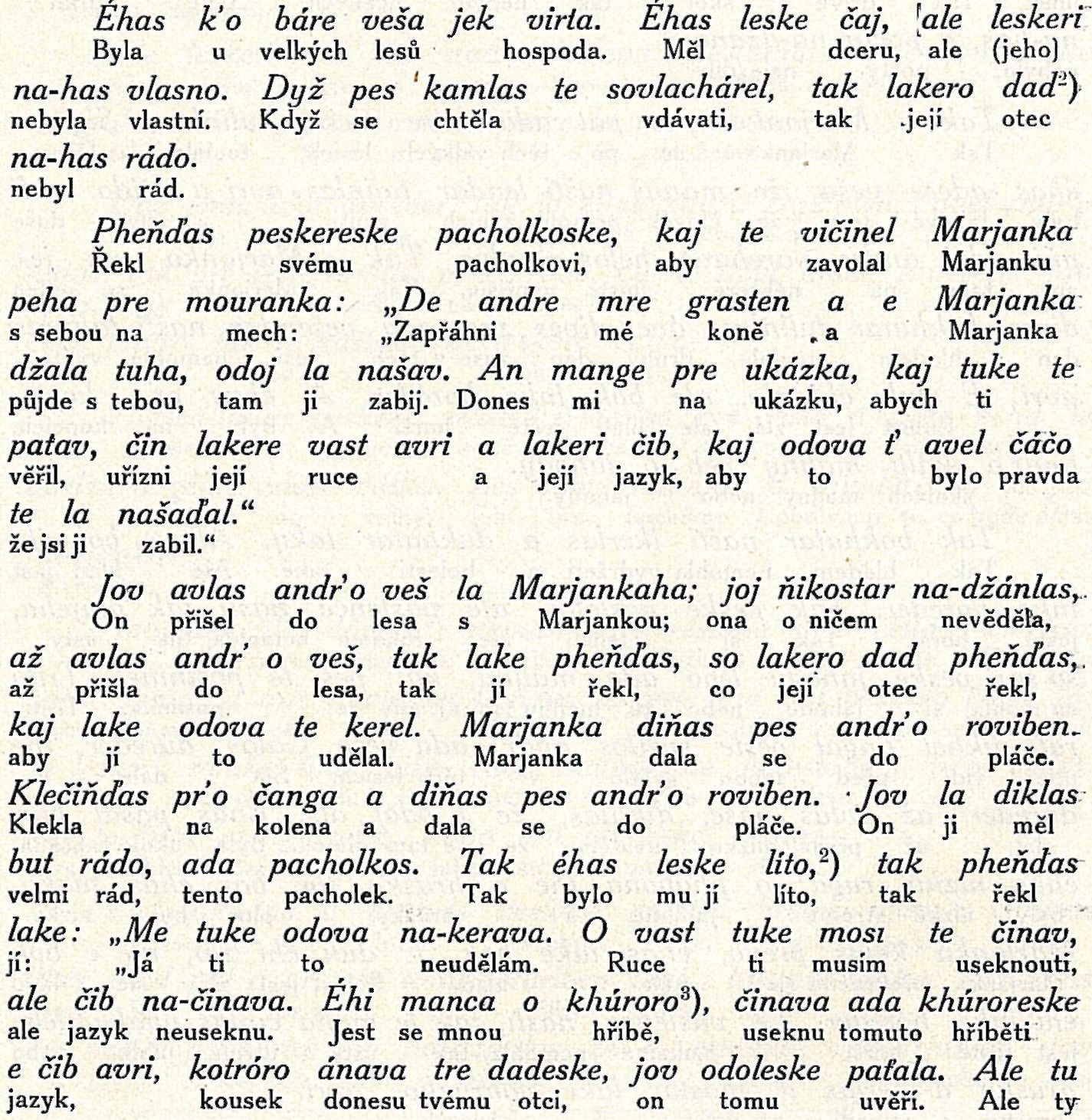 Pohádka, kterou Antonín Ištván vypravoval, jest verse pohádky-zapsané na př. u В. Němcové v Národních báchorkách a pověstech podtitulem „Zlá matka" (vyd. Soukup 1907, str. 225). Cikán názvu neuvedl. Pohádka jest otištěna tak, jak prostě a neuměle ji cikán vypravoval. I vyšinutí z vazby jsem ponechal. Leckde zřetelně chybí myšlenka, na př. hned na počátku.