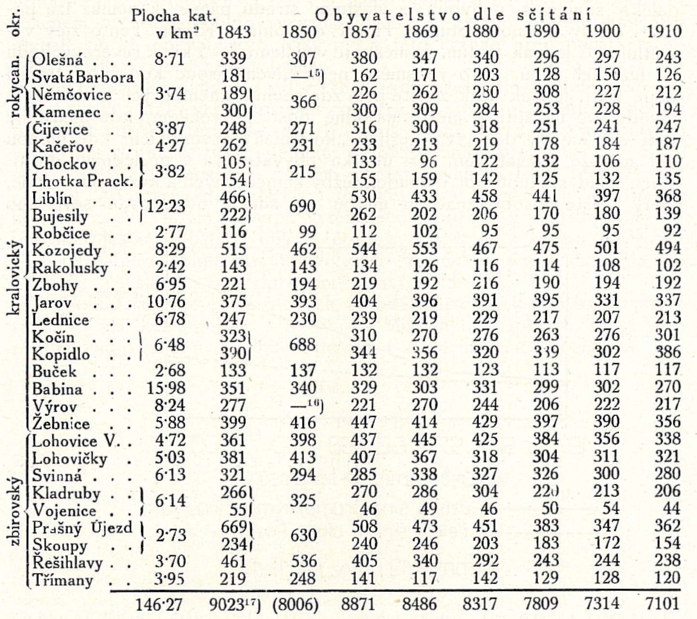 Přihlédneme-li blíže к vývoji jednotlivých osad, jak jej znázorňují čísla v tabulce srovnaná, shledáme že pokles ten není všude stejný a rovnoměrný, že naopak u většiny osad lze znamenati nepravidelnosti,