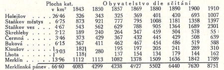 Merklínská pánev jest poslední z oněch území v plzeňské oblasti, která rozvojem těžby uhelné a průmyslu produkcí uhlí sem přivábeného rozmnožila své obyvatelstvo o hodně více nežli okolní krajiny, v nichž převládá zemědělství, a průmysl omezuje se na podniky malé nebo střední, které nevykonávají nápadného vlivu na vývoj počtu obyvatelstva. Jak značnou měrou liší se tyto oblasti s mimořádně značným přírůstkem obyvatelstva od okolního kraje, dokáží nejlépe číselné přehledy, jimiž tuto staf uzavírám.
