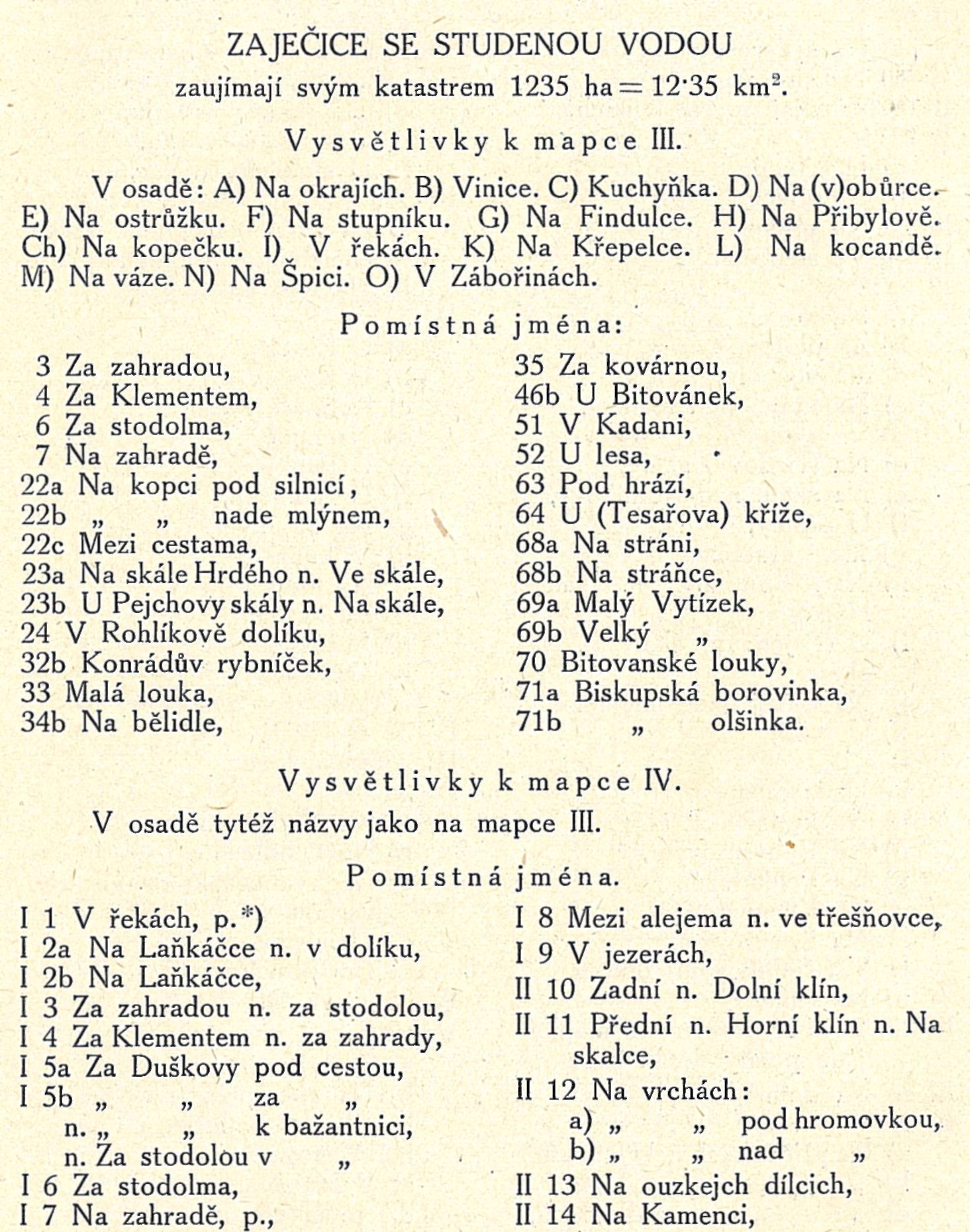 *) p. = pole, 1. = louka; kde není u názvu žádné z těchto značek, rozumí se pole.